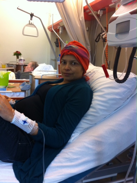 The results from the MRI showed that the breast tumor has shrunk from 2,7 cm to 2,4 and the shape has changed: it is now caved in around the perimeter, much as if it is imploding, whereas it was round before. There is not much to see now in the armpit lymph nodes. The CT scans of the liver were not very clear. This is partly because the mitomycine caused scar tissue to grow which is hard to distinguish from the cancer tissue. Also the cancer tissue has become somewhat vague on the scans. Dr. Baars primarily looks at the blood values which were improved even compared to last time. The two tumor markers are almost normal. I’m not really sure what that means, but it sounds good.